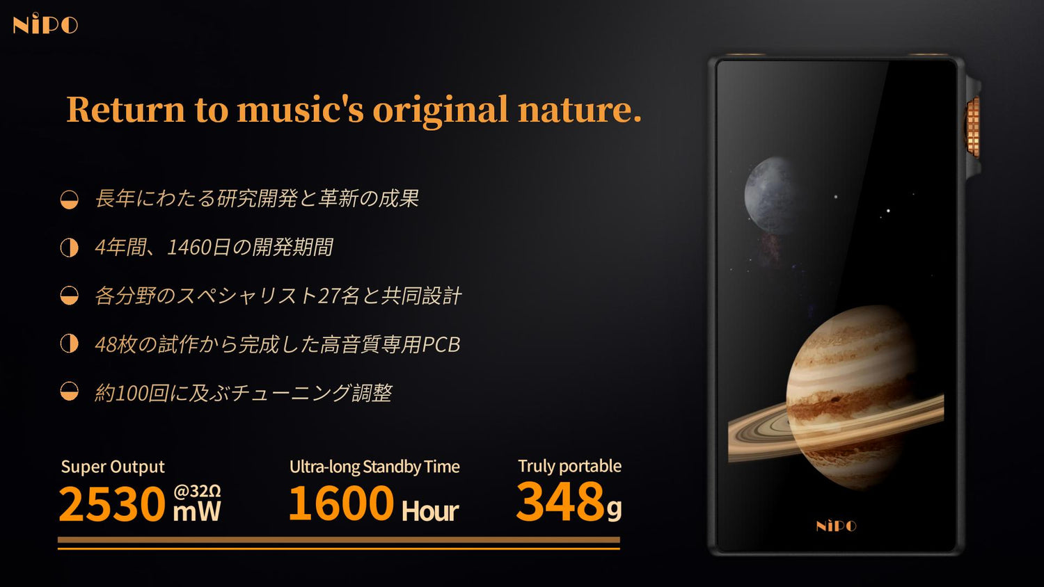 NiPOの初代モデルであるDAP「N1」は、販売開始と同時に高い評価を受け完売。その成功を礎に、4年の歳月をかけて開発された次世代フラッグシップモデル「N2」は、音質と設計思想の両面でさらなる進化を遂げました。