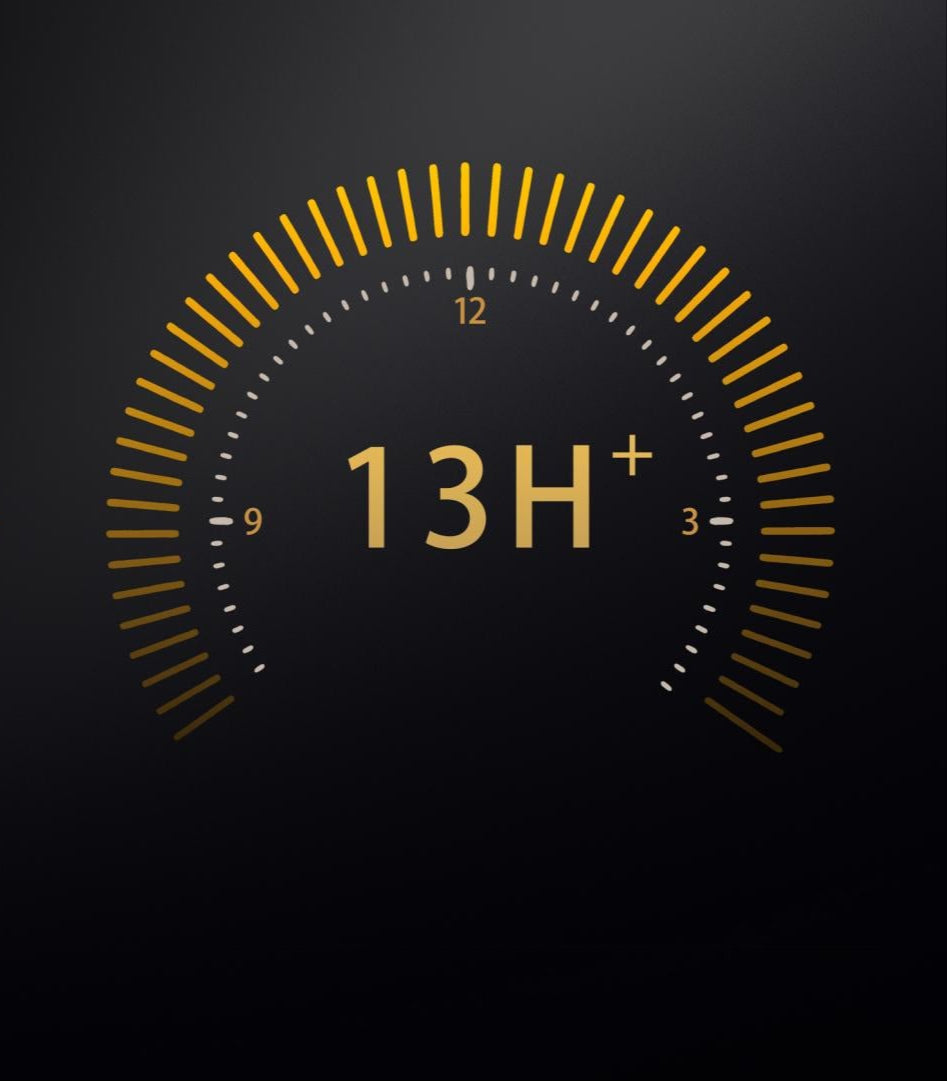 効率化された電源供給と熱処理設計により、最大13時間の連続再生を実現。快適な使用感を長時間提供します。