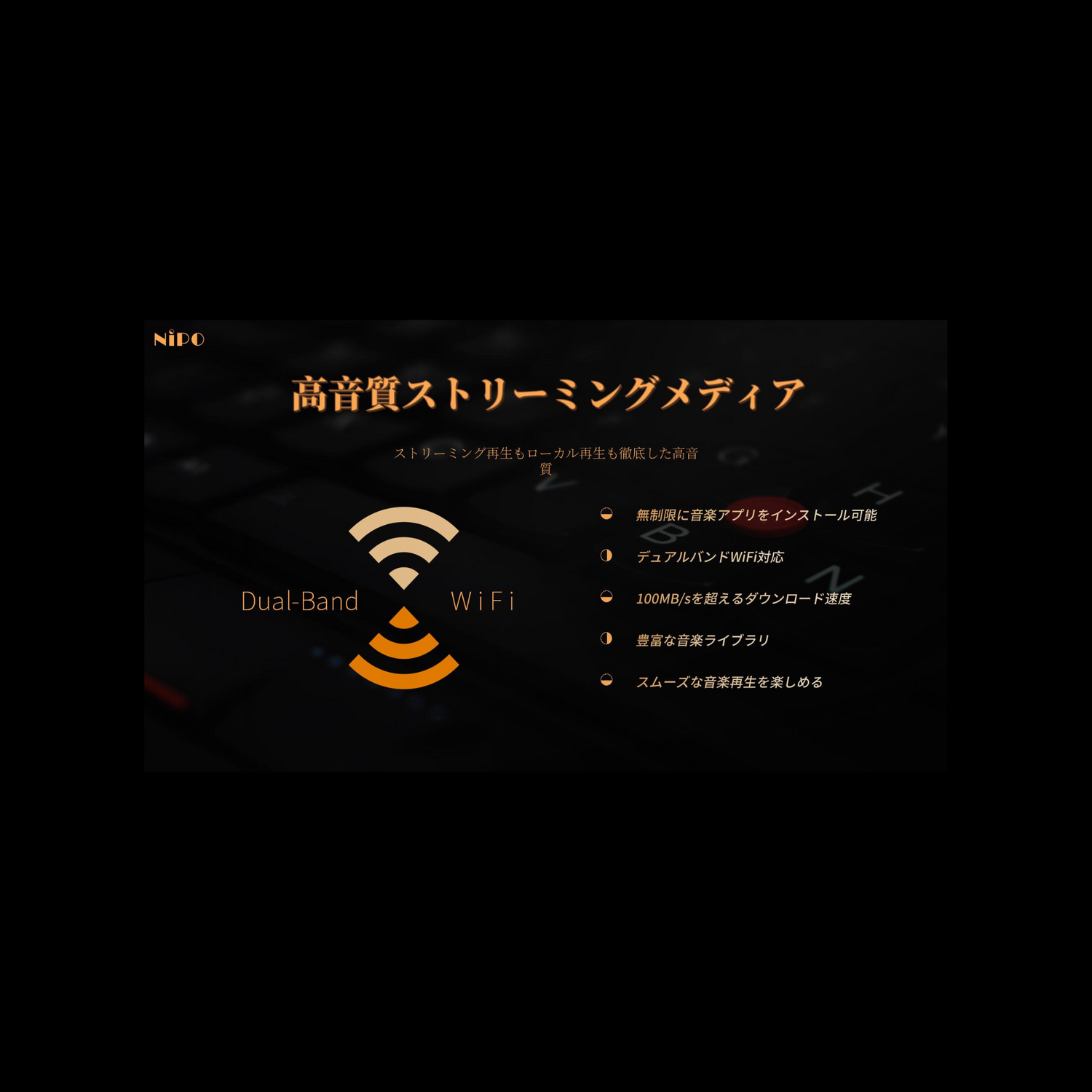 高速で安定したデュアルバンドWiFiに対応しており、ダウンロードもストリーミングも自由に楽しむことができます。また再生アプリにはULAアーキテクチャを最大限発揮させるUSB Audio Player PRO(以下UAPP)をプリインストールしています※UAPPのアクティベートには同封する案内書をご参照ください。