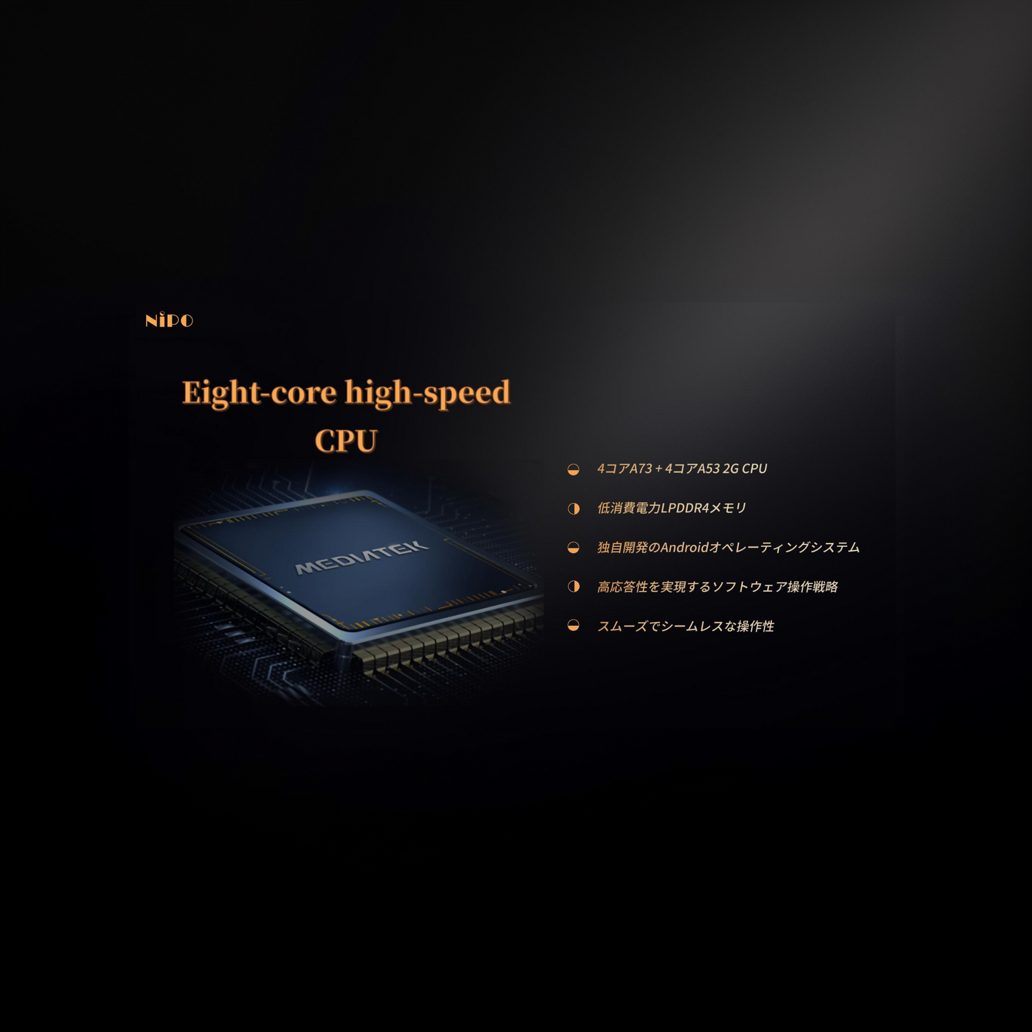 プロセッサは4コアA73 + 4コアA53構成の8コアCPUを搭載。シームレスでストレスフリーな使用感を提供。より多くのコンテンツを快適に楽しむため6G内蔵メモリと大容量ストレージを搭載しました。さらにmicroSDカードを追加することでより多くの音楽を持ち運ぶことができます。